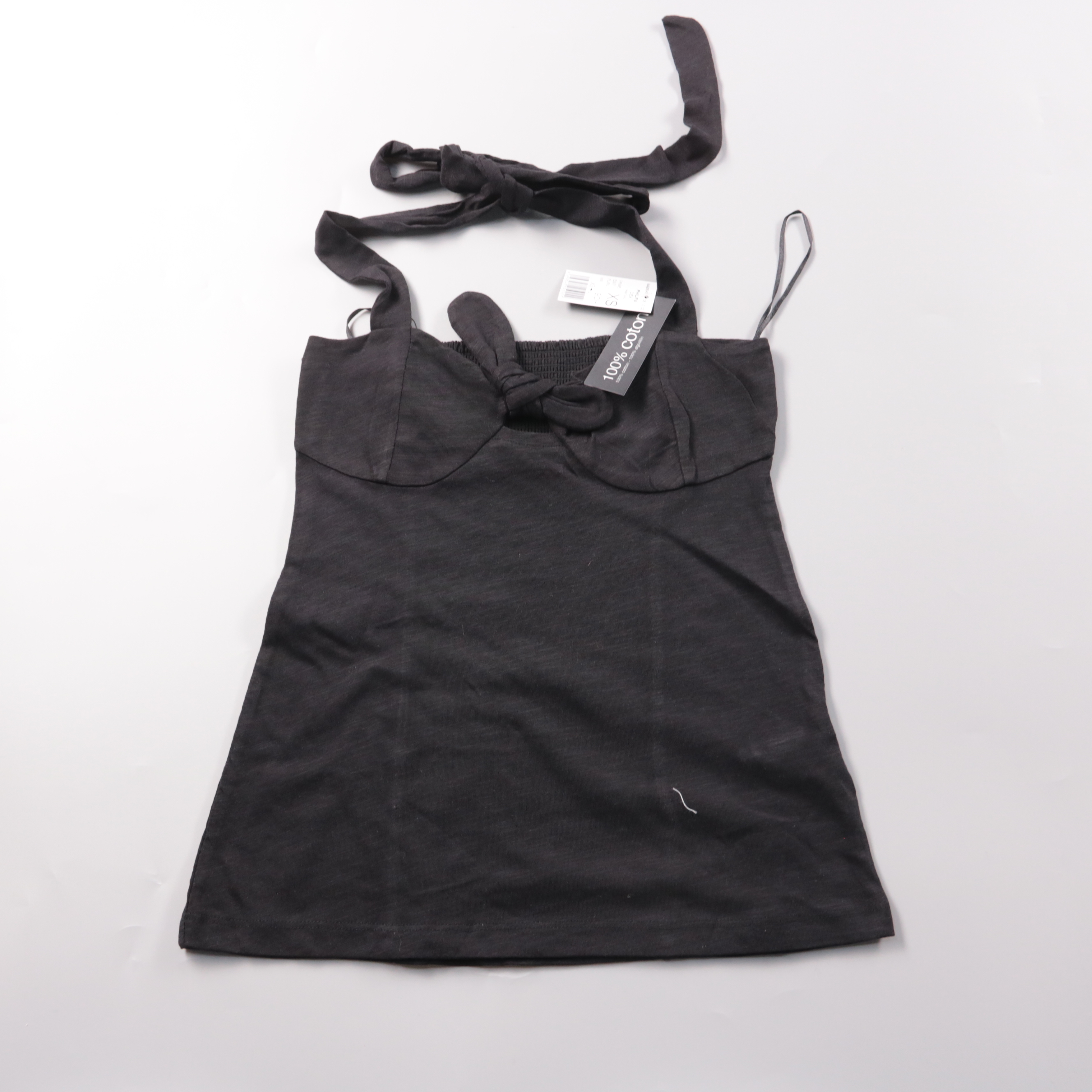 Топ Etam чёрного цвета с завязками на шее и лифом с формованными чашками. Подойдёт для лета и отдыха, можно носить с юбкой или шортами. Натуральный хлопок приятен к телу и хорошо дышит.