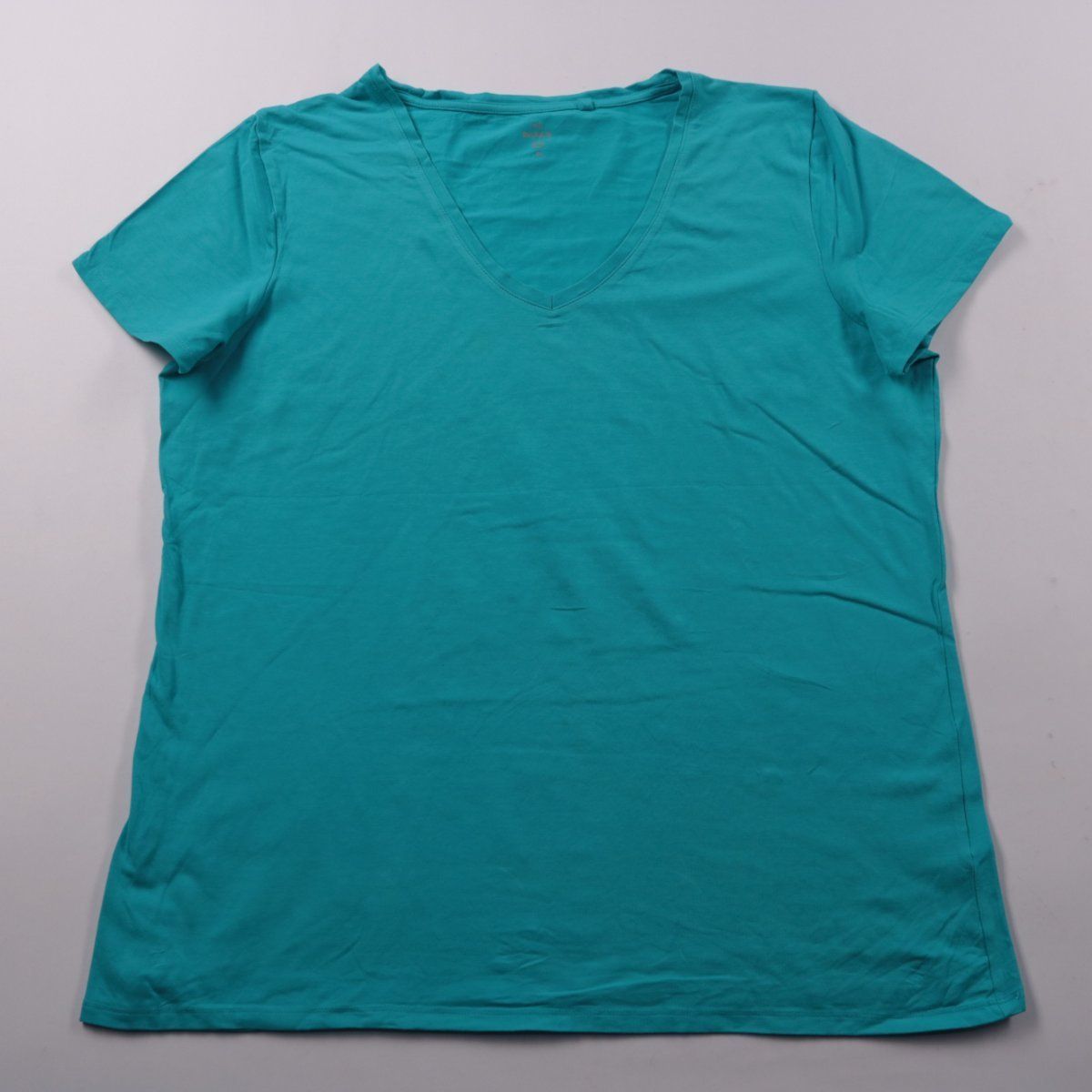 Женская футболка C&A The Basics бирюзового цвета с V-образным вырезом и коротким рукавом. Подойдёт для повседневных образов и как базовый слой под жакет или кардиган. Мягкий хлопковый трикотаж со стрейчем комфортно садится по фигуре и не сковывает движения.