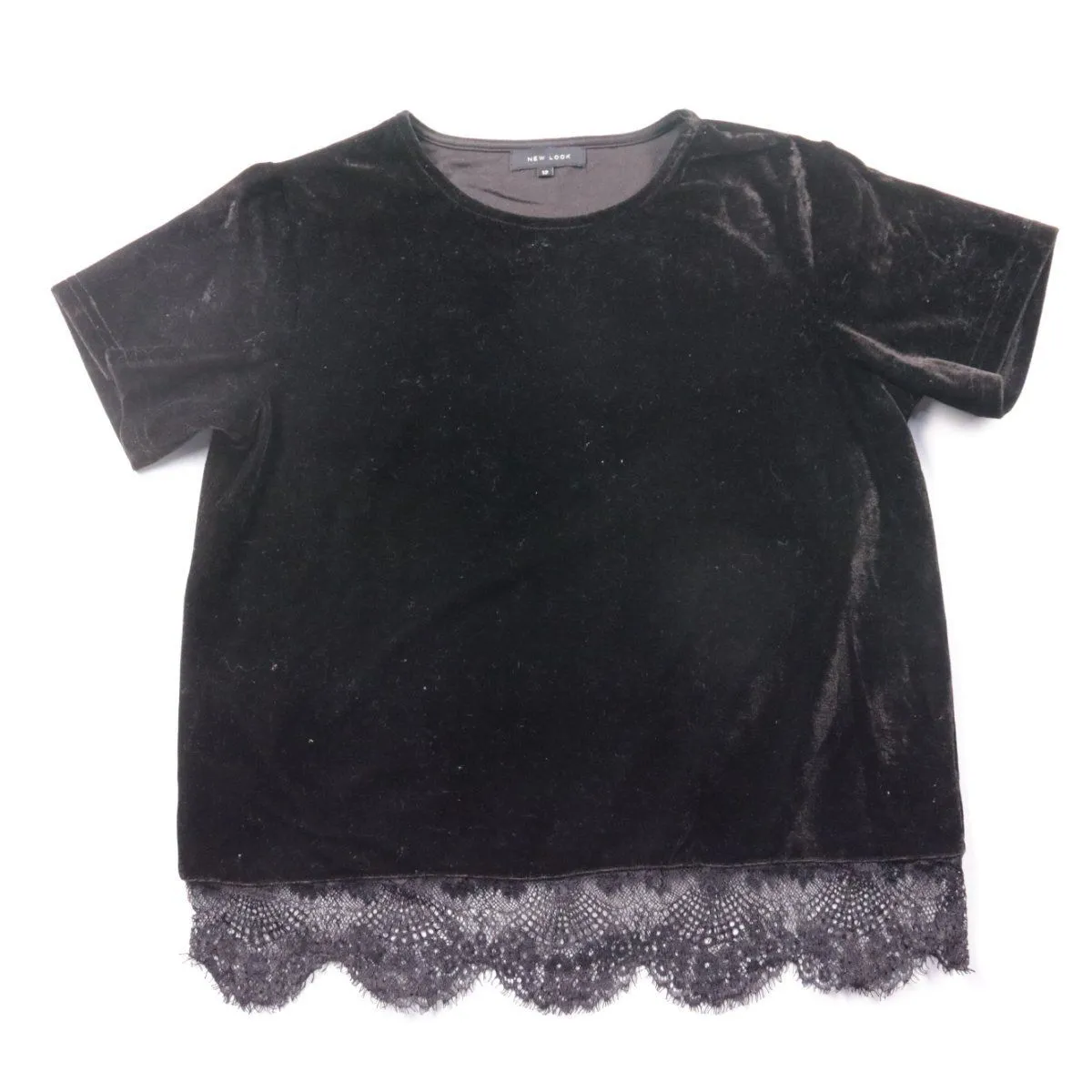 Женская футболка New Look из мягкого бархатистого трикотажа с кружевной отделкой по низу. Подойдёт для повседневных образов и для выхода, когда хочется добавить фактуры и деталей. Материал тянется, поэтому комфортно садится по фигуре.
