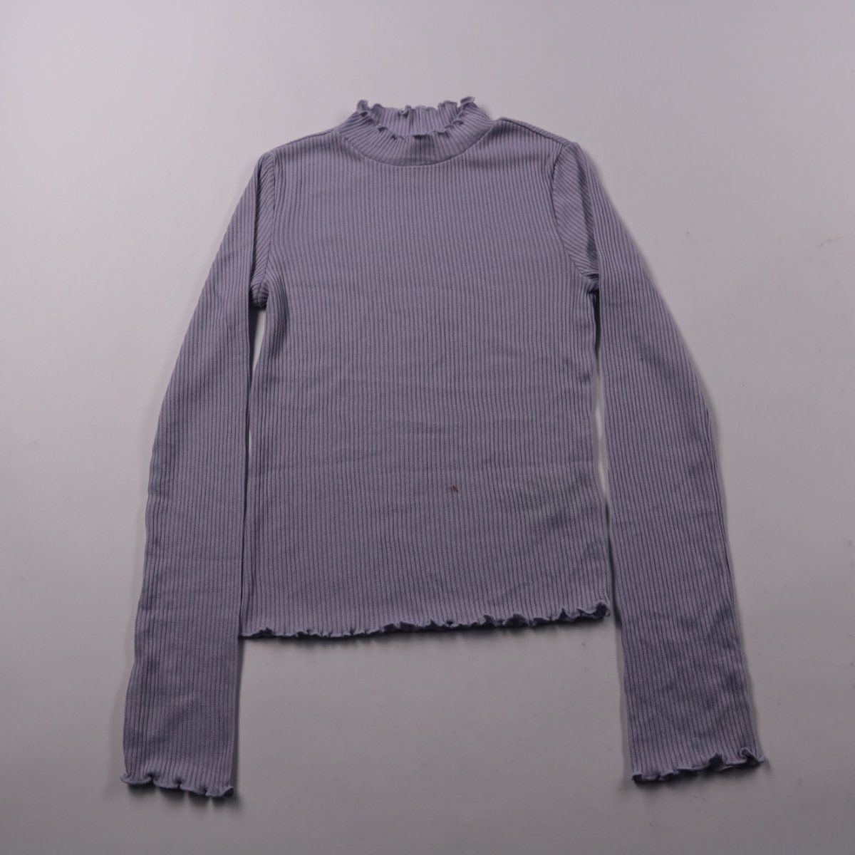 Женский лонгслив в рубчик с воротником-стойкой и волнистыми (lettuce) краями по горловине, манжетам и низу. Подойдёт для повседневных образов и как базовый слой под жакет или куртку. Практичен в уходе за счёт полиэстера и хорошо тянется за счёт фактуры ткани.