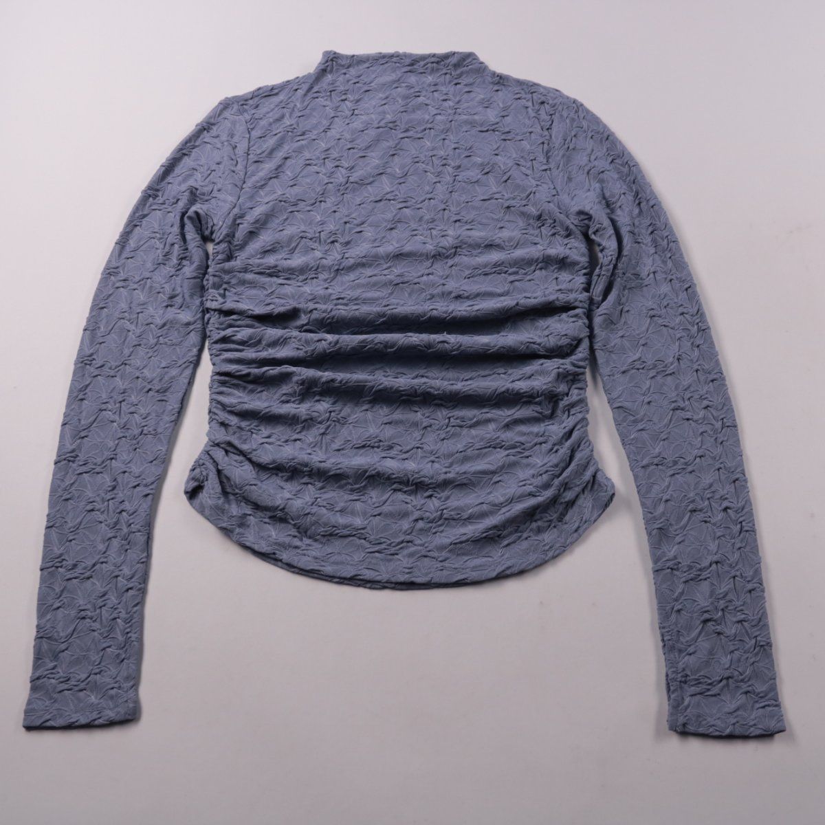 Лонгслив ONLY в цвете Tempest с фактурной жатой поверхностью и воротником-стойкой. Подойдёт для повседневных образов и как базовый слой в прохладную погоду. Эластичный материал хорошо тянется и комфортно садится по фигуре.