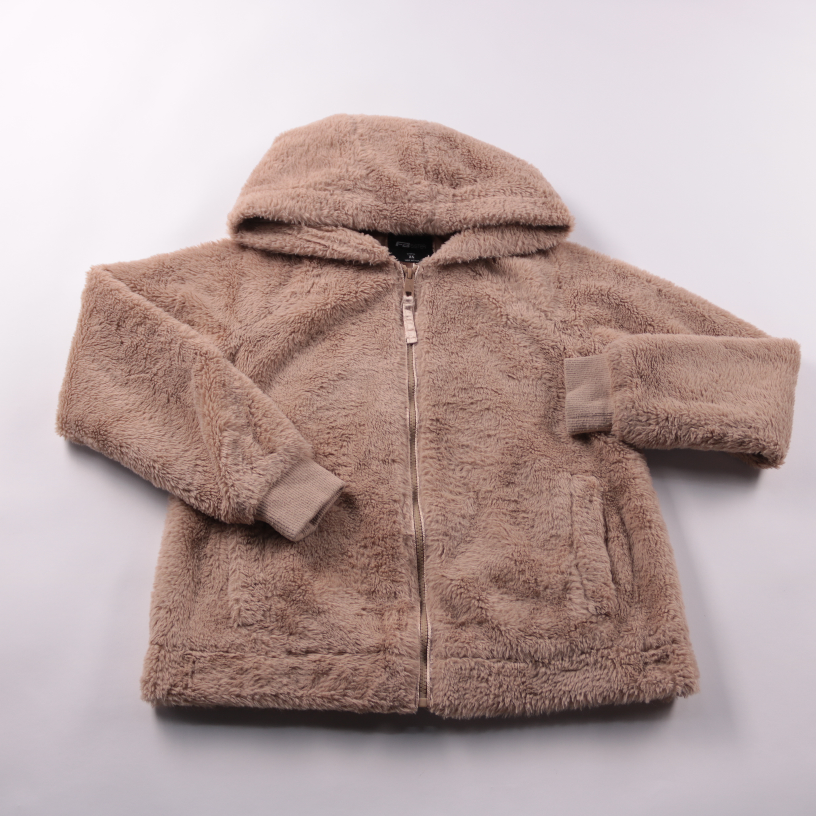 Мягкая плюшевая куртка FB Sister с капюшоном и застёжкой на молнию. Подойдёт для прогулок и повседневных образов в прохладную погоду, удобно носить поверх худи или свитера. Практичный плюс — тёплый фактурный материал и карманы для мелочей.