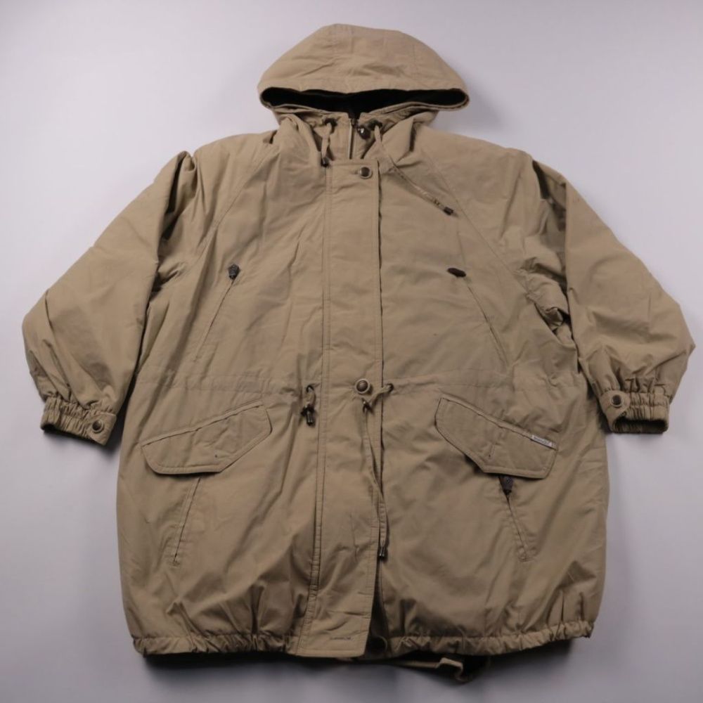 Парка SympaTex в бежевом цвете с капюшоном и утяжками, удобная для города и прогулок в непогоду. Мембранный материал SympaTex помогает защищать от ветра и влаги, при этом остаётся комфортной при активном движении.