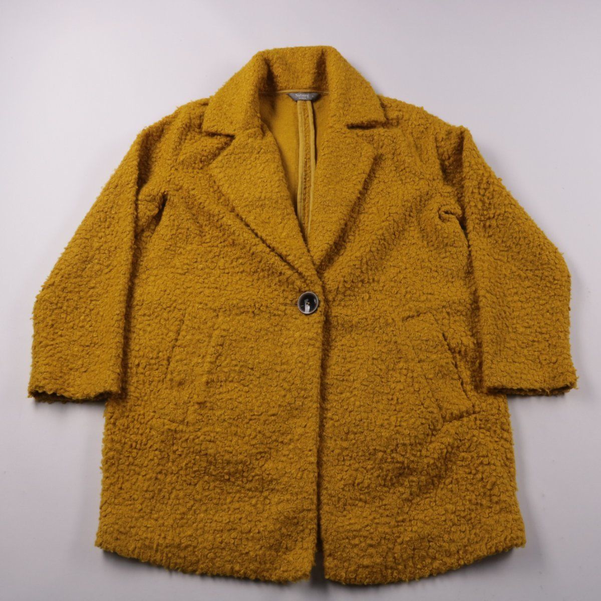 Женская шуба Nutmeg из фактурного искусственного меха (тедди) горчично-жёлтого цвета, застёгивается на пуговицу. Подойдёт для прохладной погоды и повседневных образов. Практичный плюс — материал полиэстер, проще в уходе и быстро сохнет.