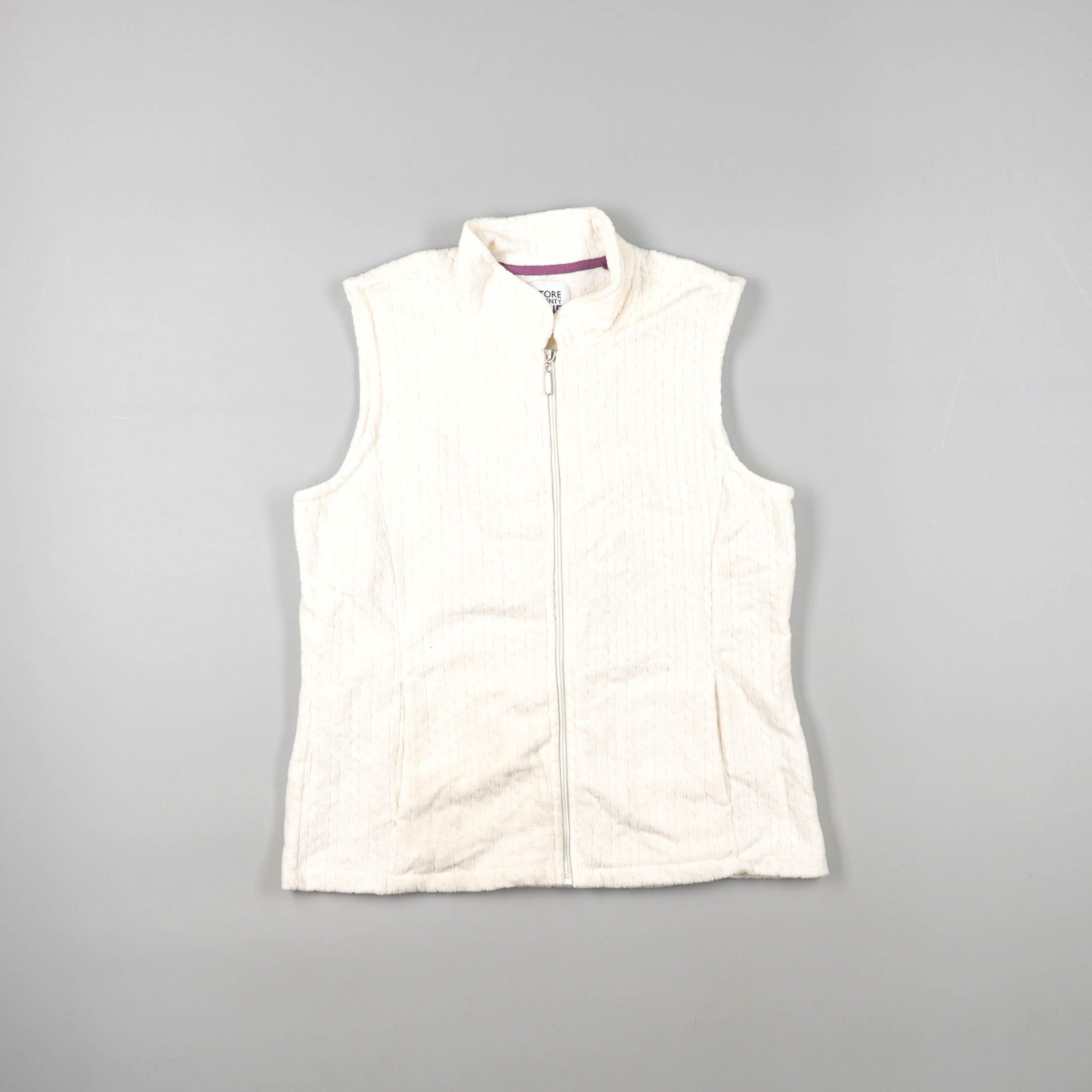 Женский белый стёганый жилет на молнии со стойкой и боковыми карманами. Подойдёт для прогулок и поездок в прохладную погоду, удобно носить поверх худи или свитера. Лёгкий и не сковывает движения благодаря отсутствию рукавов.