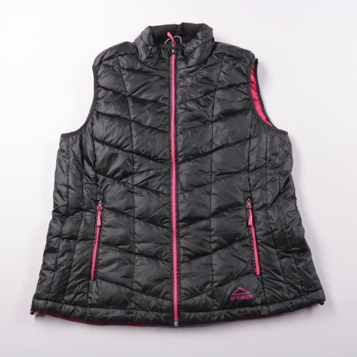 Стёганый женский жилет McKinley на молнии, с высоким воротником и контрастной розовой фурнитурой. Подойдёт для прогулок, поездок и активного отдыха в прохладную погоду, удобно носить поверх худи или свитера. Лёгкий и тёплый, есть два кармана на молниях.