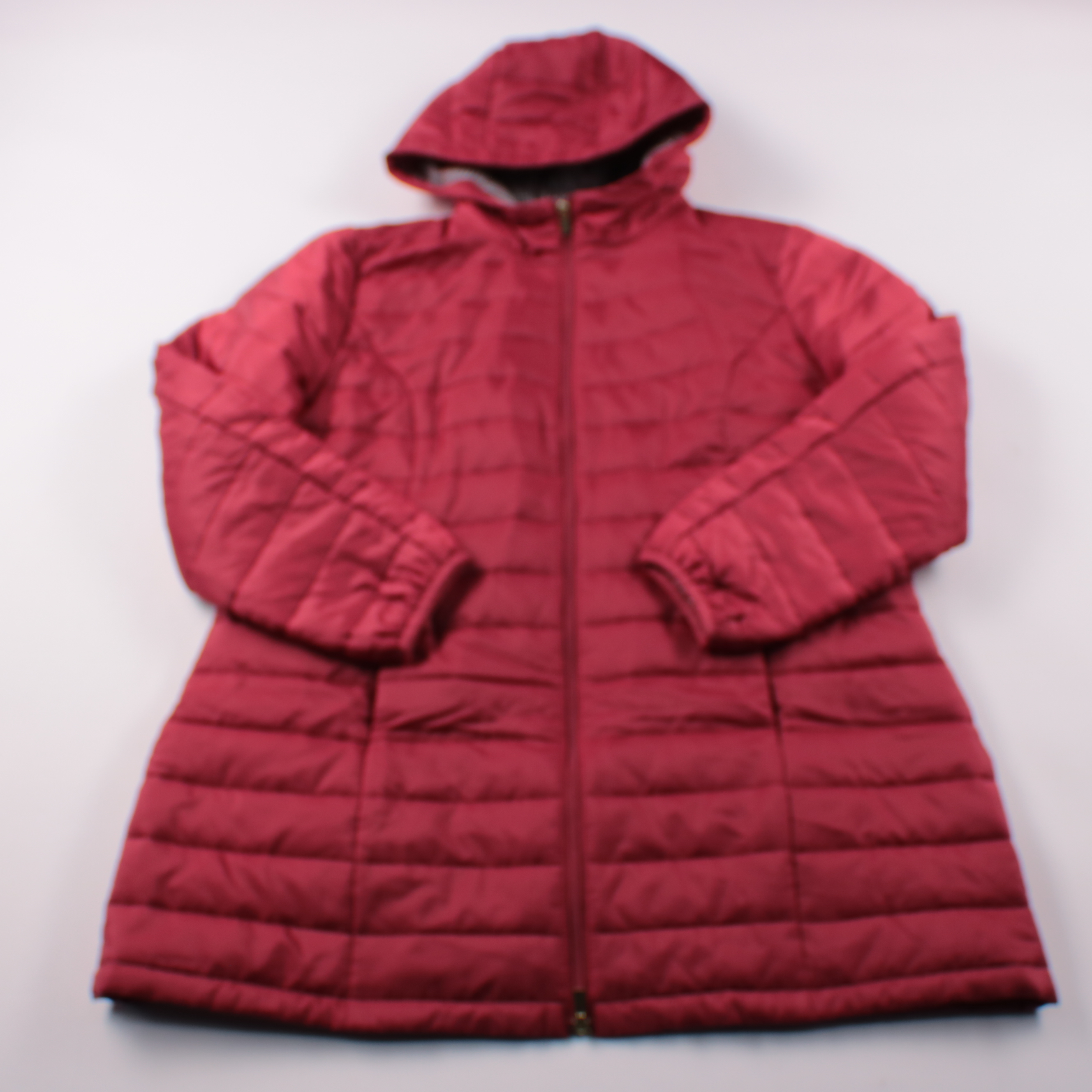 Стёганная куртка с капюшоном на молнии, без указанного бренда. Подойдёт для прохладной погоды и повседневных прогулок в городе. Лёгкая и простая в уходе — можно стирать в машинке.