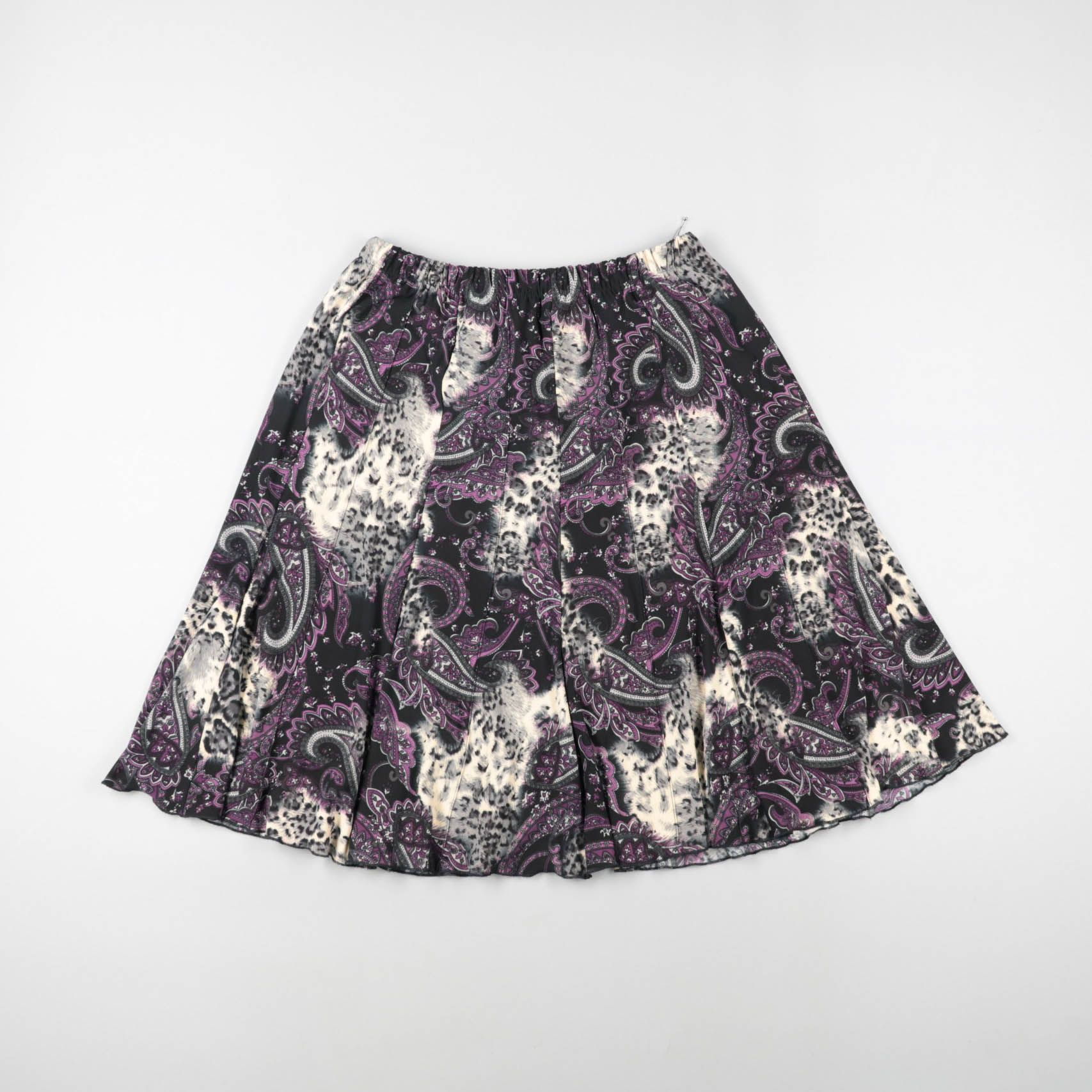 Женская юбка миди с эластичным поясом и пышным расклешённым кроем. Принт в стиле пейсли с анималистичными вставками в чёрно-бело-фиолетовой гамме, хорошо смотрится с однотонным верхом на каждый день. Пояс на резинке удобно садится по талии и не сковыва...