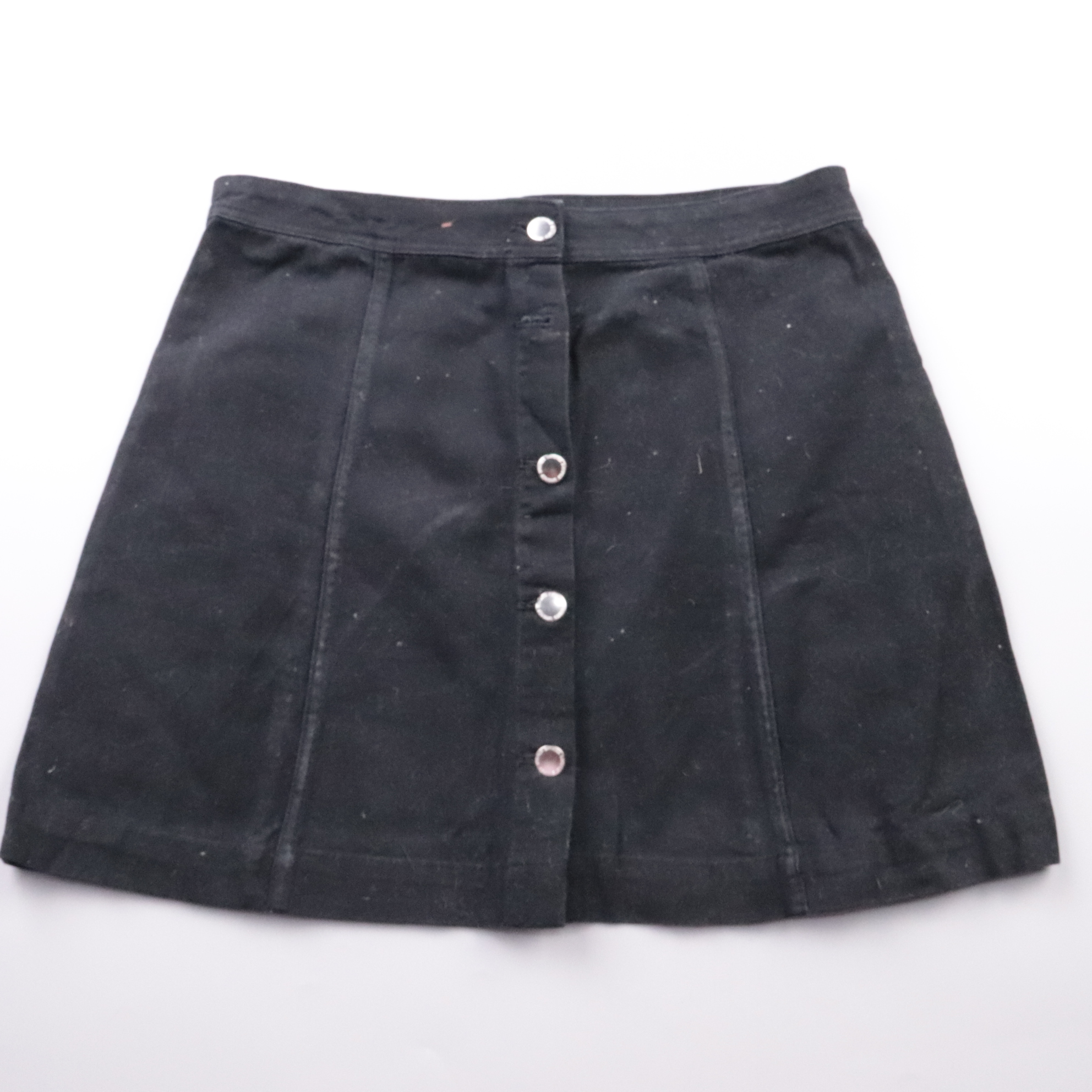 Чёрная джинсовая юбка H&M на кнопках спереди, с аккуратными вертикальными швами. Подойдёт на каждый день и для образов в стиле casual с футболками, рубашками и свитерами. Плотный деним держит форму и легко сочетается с любой обувью.