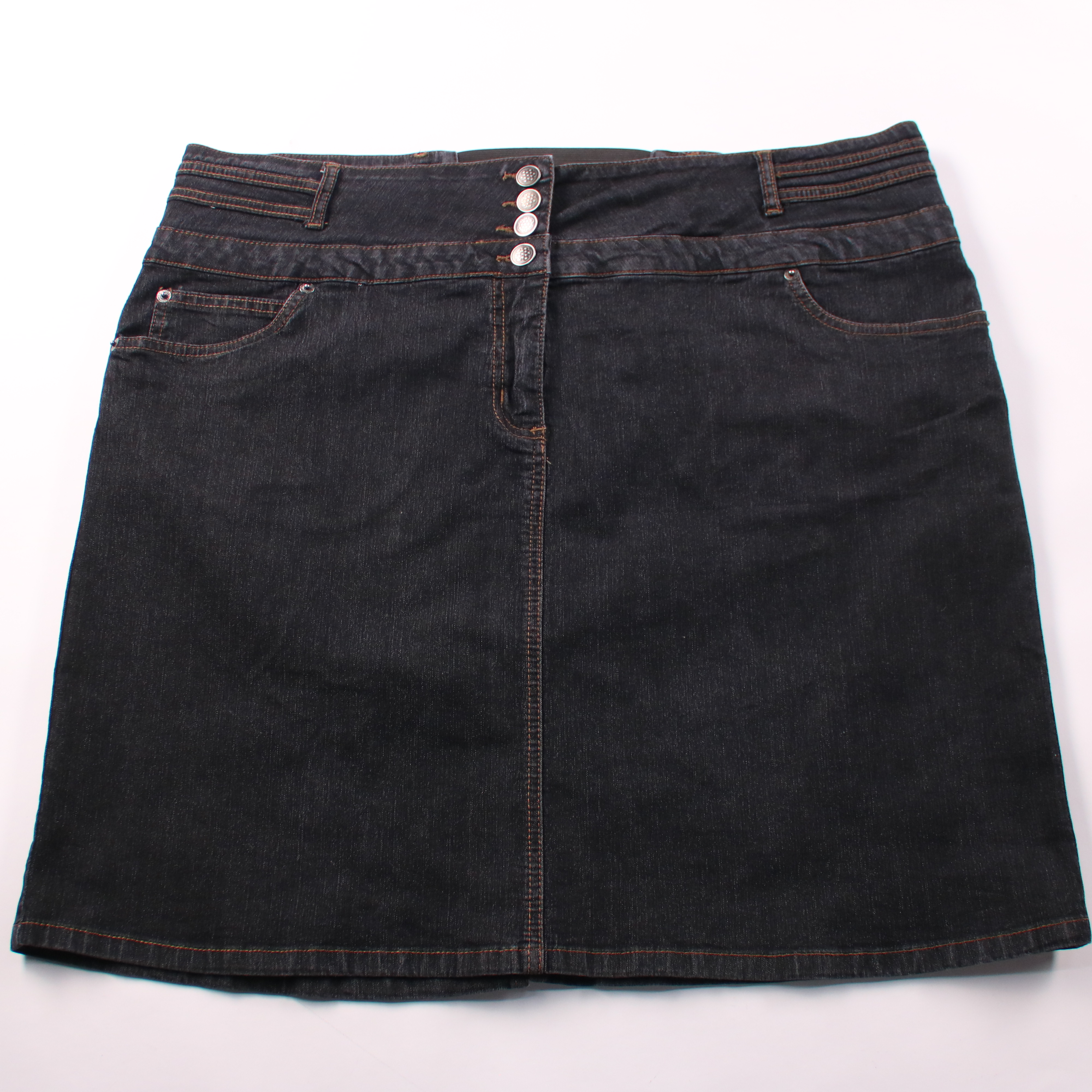 Джинсовая юбка Boncahneporte тёмно-синего цвета с застёжкой на пуговицы и карманами. Подойдёт для повседневных образов в городе и на работу, легко сочетается с футболками и рубашками. Плотный деним со стрейчем обеспечивает более комфортную посадку.