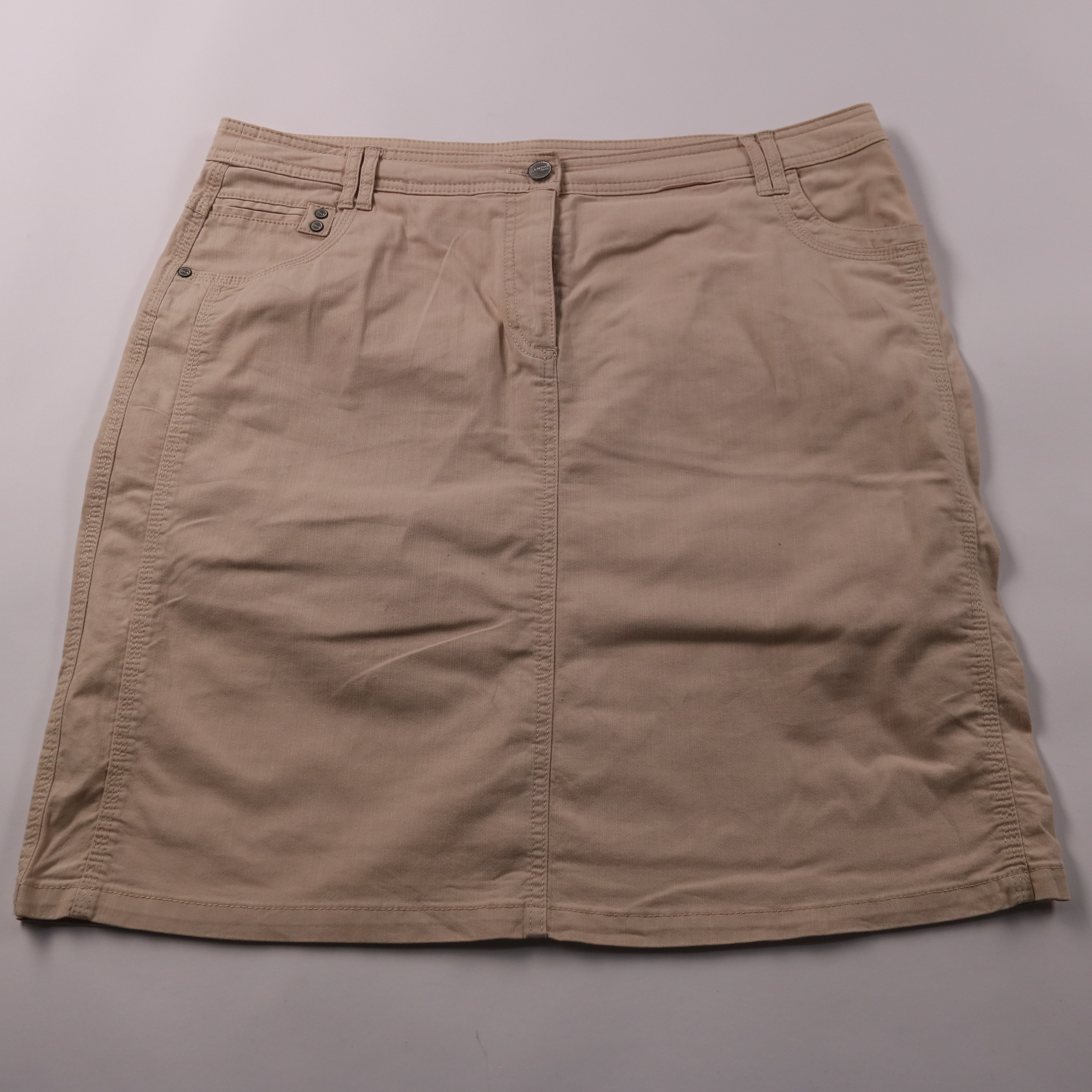 Женская юбка прямого кроя из плотного хлопкового материала в бежевом цвете, со шлёвками и карманами. Подойдёт для повседневных образов и офиса в сочетании с футболкой или рубашкой. Практична в носке и легко комбинируется с базовым гардеробом.
