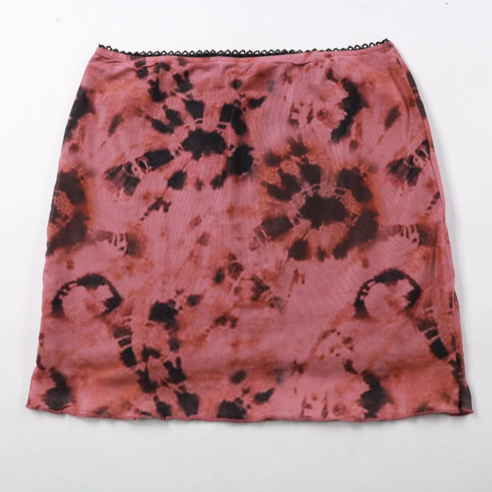 Юбка из эластичной ткани с принтом тай-дай в розово-бордовых тонах, размер M. Подойдёт для повседневных образов и поездок, легко сочетается с однотонными топами и футболками. Материал тянется и комфортно садится по фигуре.