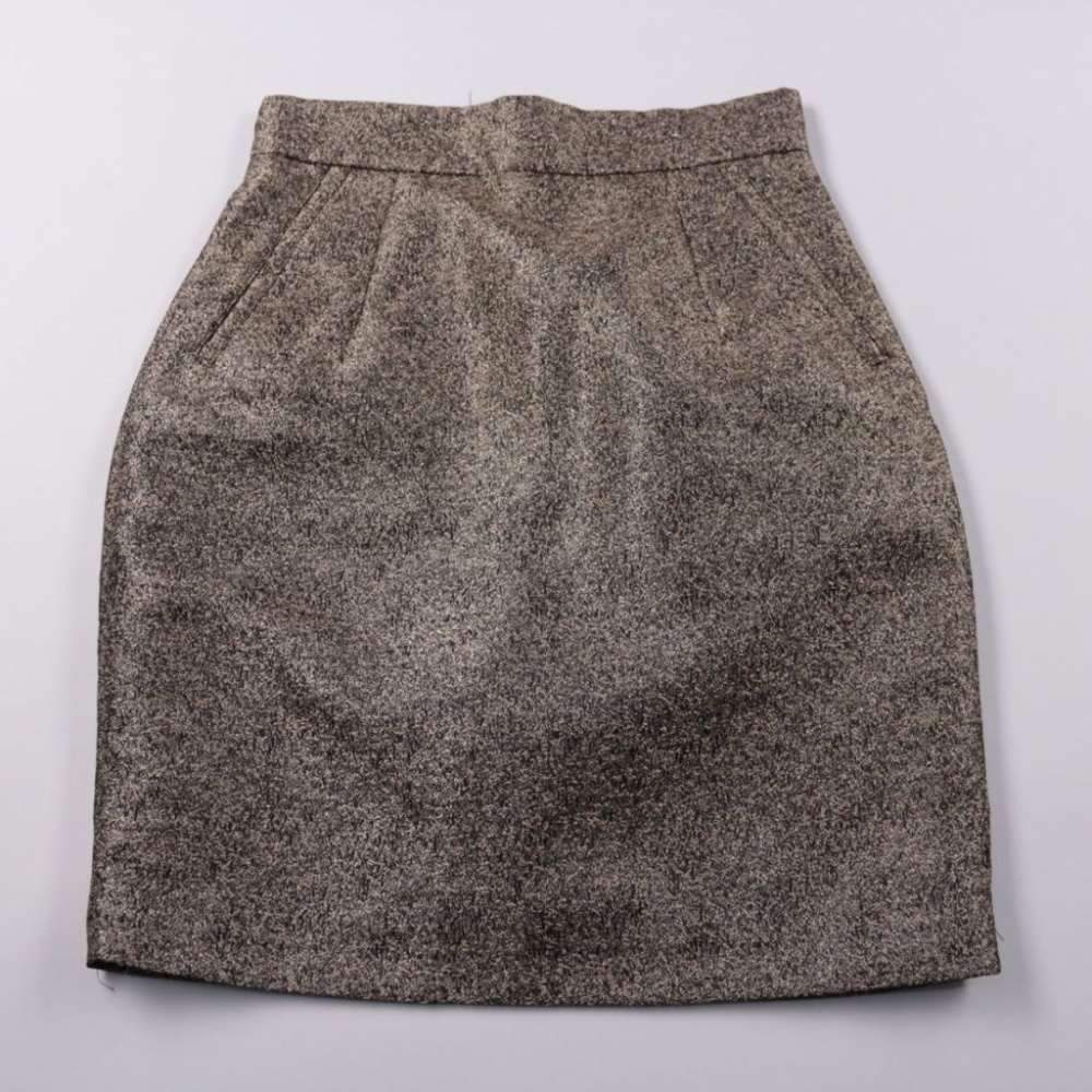 Юбка H&M из плотной ткани с металлизированной нитью и аккуратной посадкой по талии. Подойдёт для офиса и выходов, когда хочется добавить образу немного блеска без лишнего декора. Есть подкладка, поэтому юбка комфортно сидит и не просвечивает.