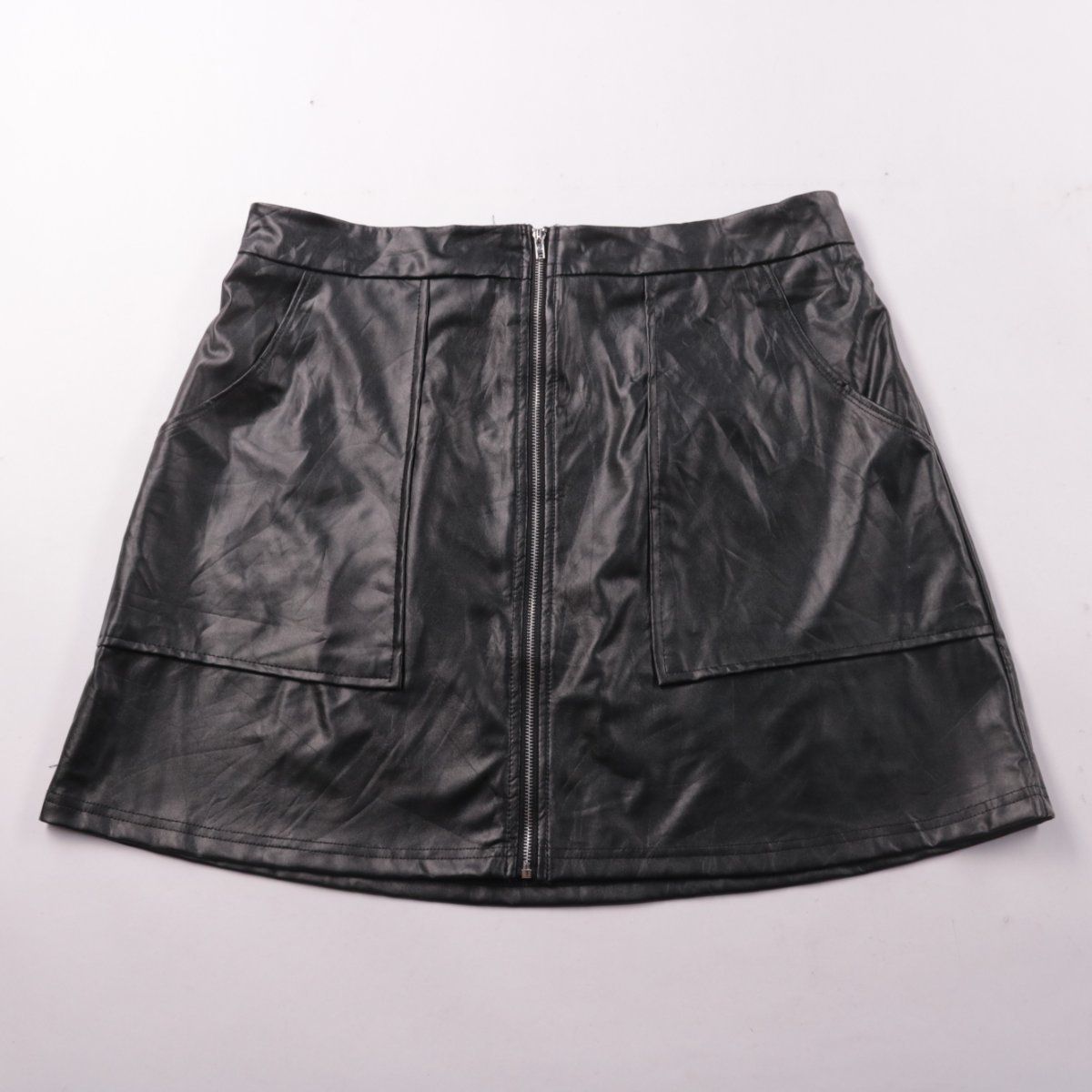 Женская юбка Shein Curve из экокожи чёрного цвета с застёжкой-молнией спереди и накладными карманами. Подойдёт для повседневных образов в демисезон и прохладные летние вечера. Материал практичный и легко протирается от загрязнений.